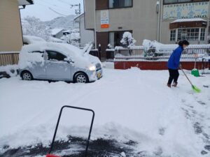 職員も、自宅で雪かき→職員用駐車場の雪かき→事業所の駐車場で雪かきと、連日仕事に入る前から疲労困憊の状況でした。